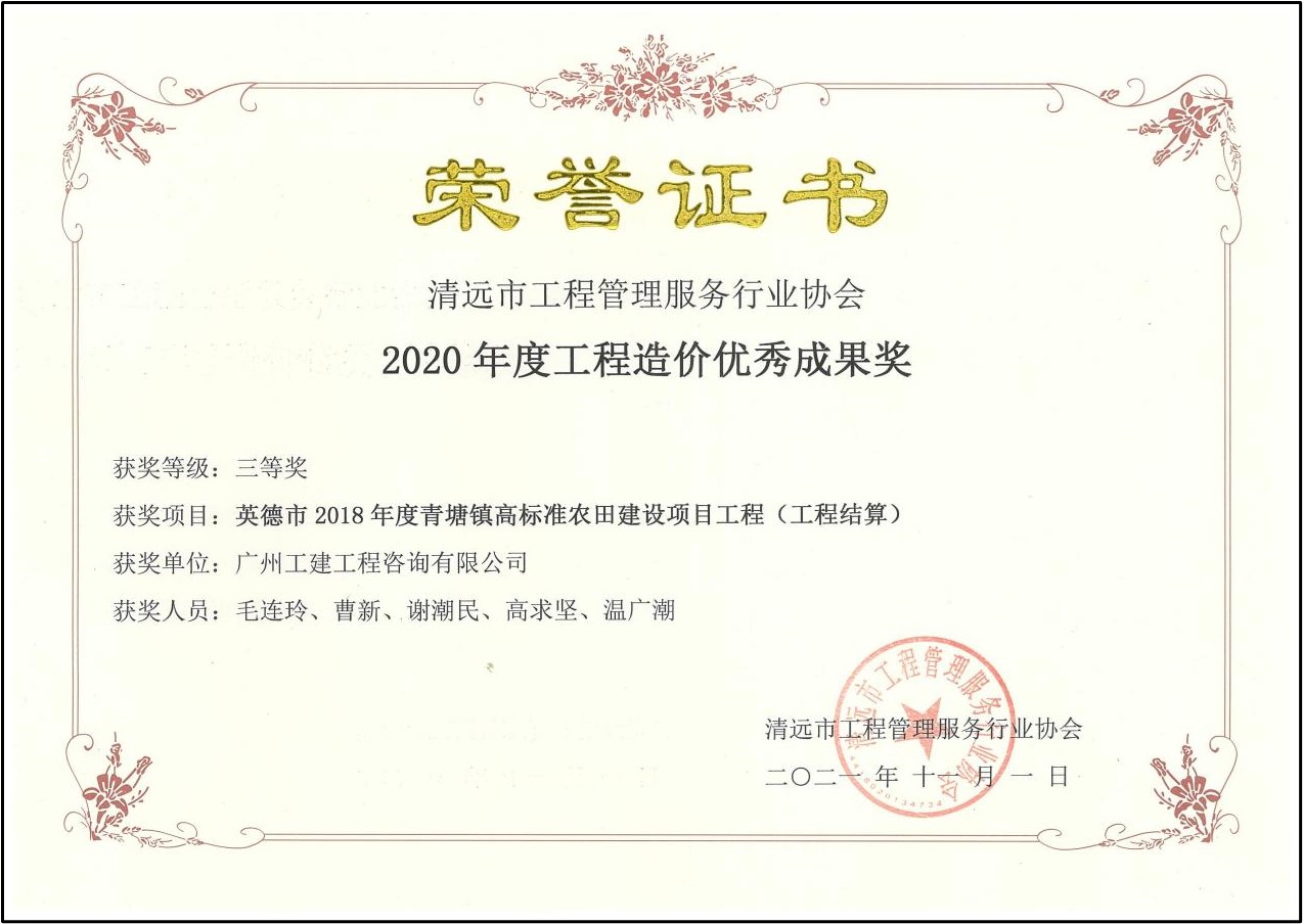 清遠(yuǎn)市2020年度工程造價(jià)優(yōu)秀成果獎(jiǎng)