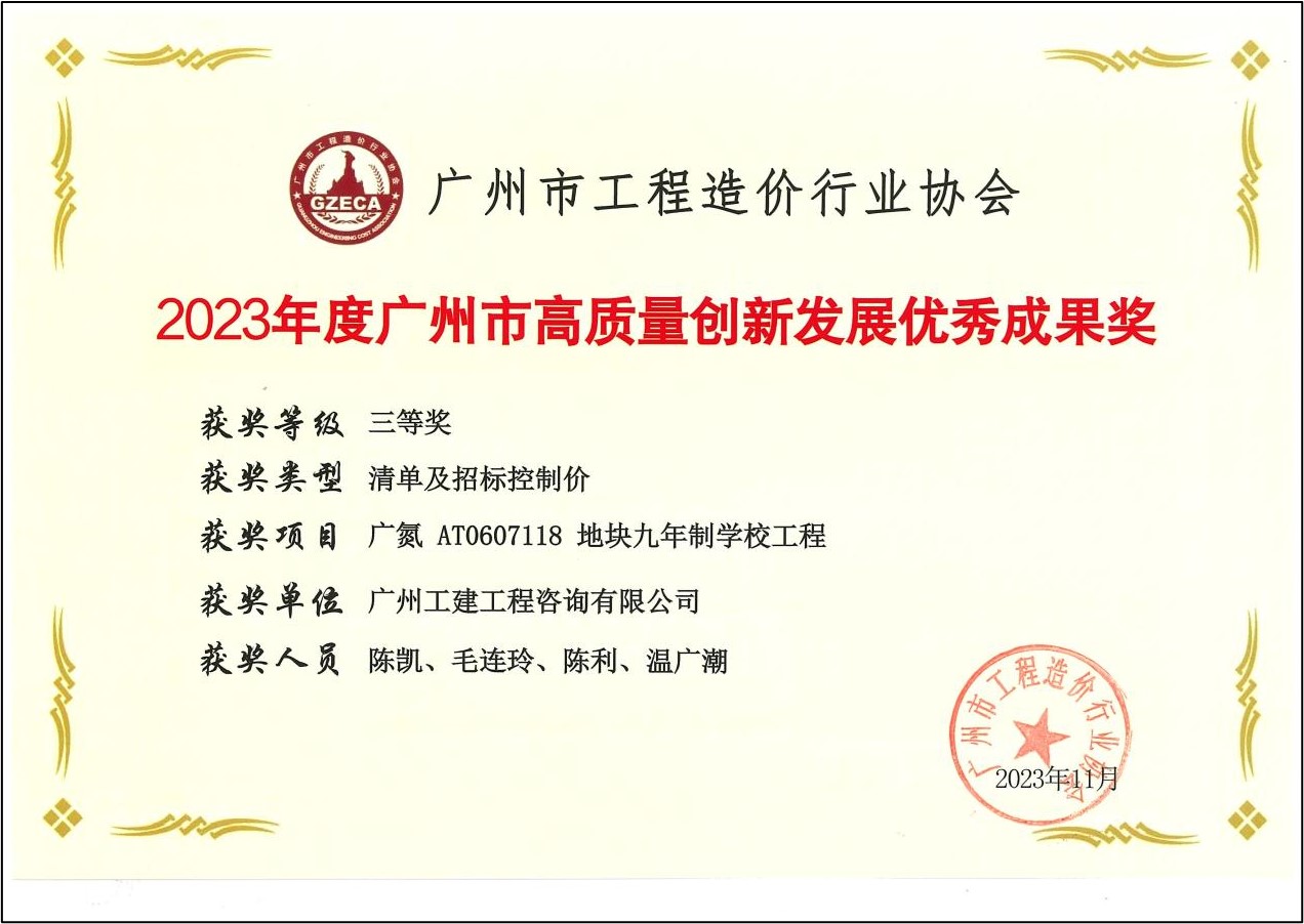 廣州市廣氮優(yōu)秀成果獎(jiǎng)三等獎(jiǎng)