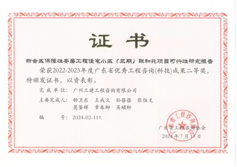 廣東省優(yōu)秀工程咨詢(科技)成果二等