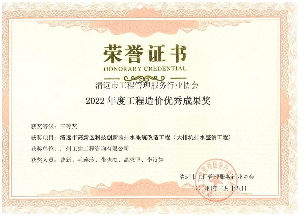 清遠(yuǎn)市2022年度工程造價(jià)優(yōu)秀成果獎(jiǎng)